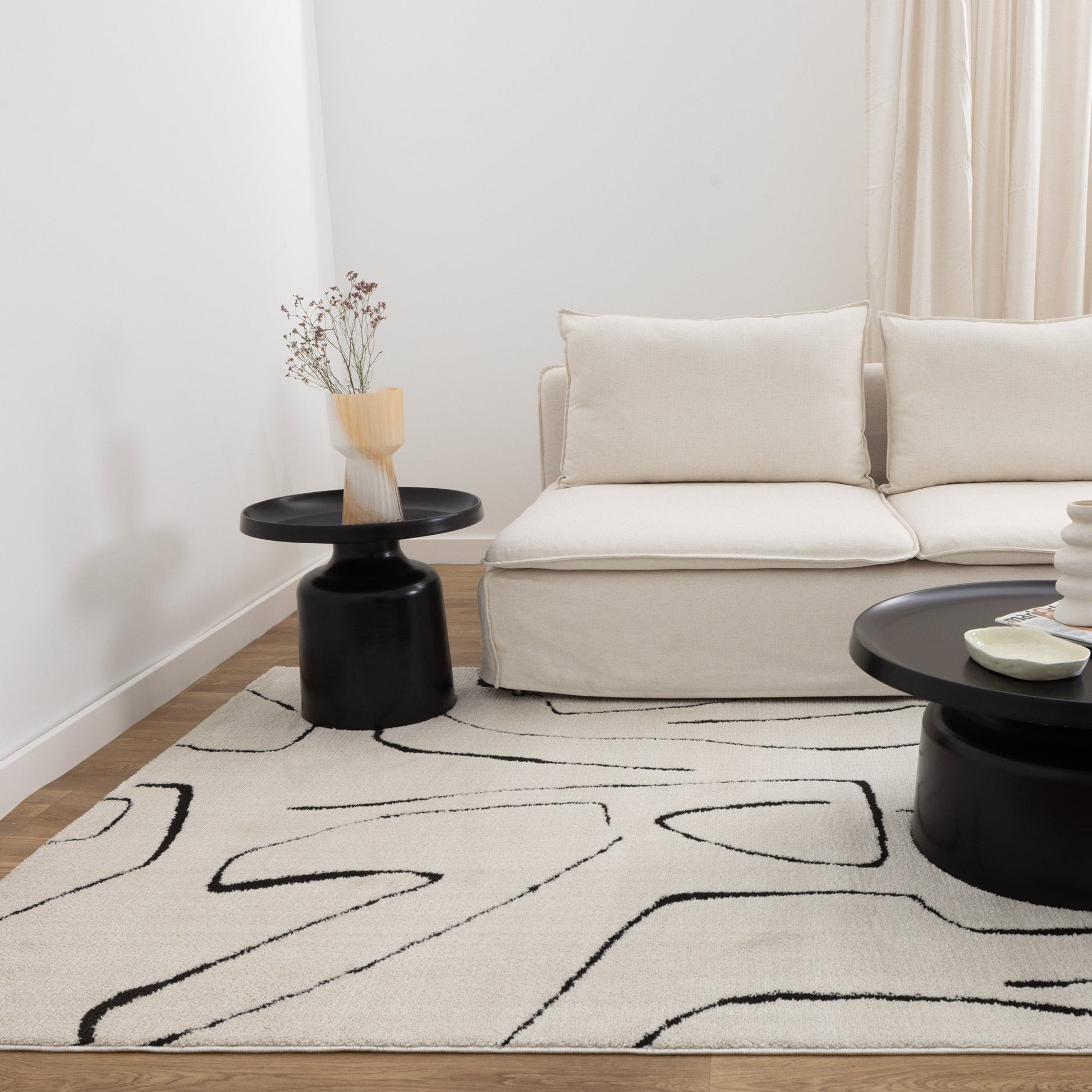 Mila Modern Lines Cream and Black Rug - MIL6